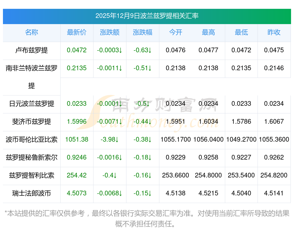 2025年12月9日波蘭茲羅提相關(guān)匯率查詢