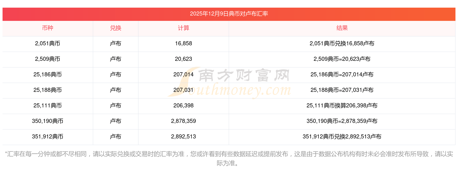 2025年12月9日盧布換典幣匯率是:0.12166