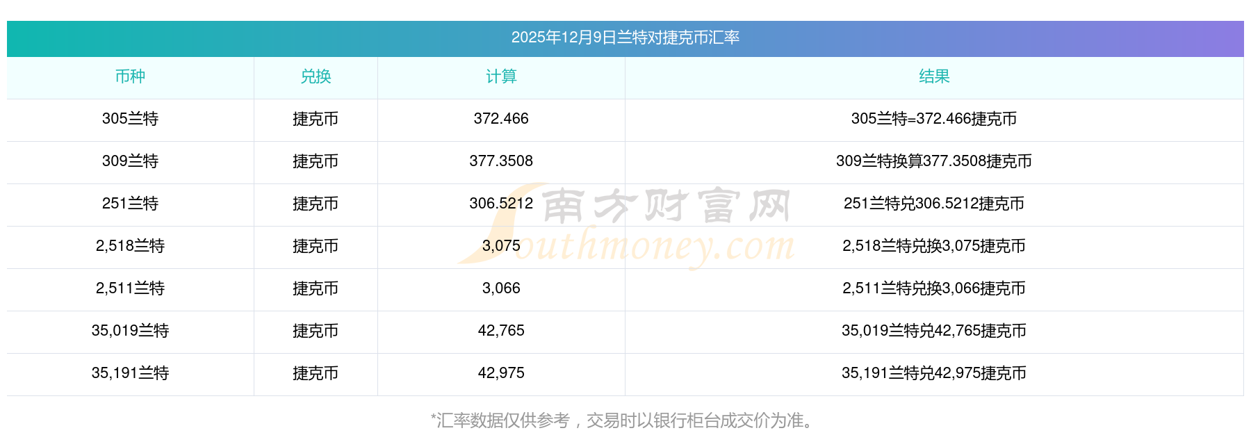 2025年12月9日蘭特與捷克幣的兌換匯率計算如下: