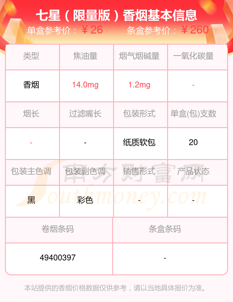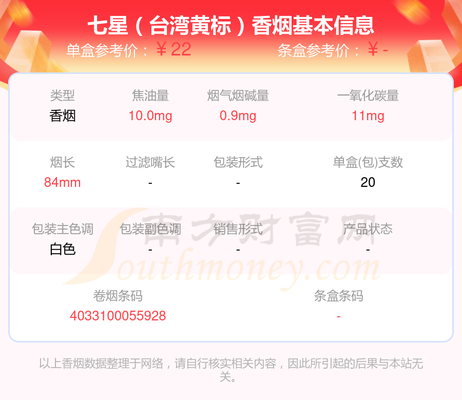 以上香煙數(shù)據(jù)整理于網(wǎng)絡(luò),請自行核實相關(guān)內(nèi)容,因此所引起的后果與本站無關(guān)。