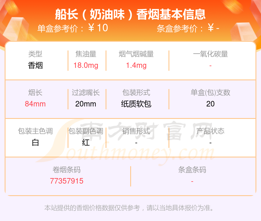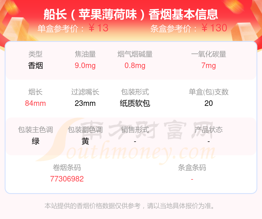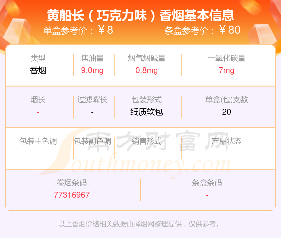 船長(zhǎng)(奶油味)參考價(jià)10.0元/包、船長(zhǎng)(蘋果薄荷味)參考價(jià)13.0元/包、黃船長(zhǎng)(巧克力味)參考價(jià)8.0元/包、皇家方舟(天堂茶)參考價(jià)10.0元/包等。