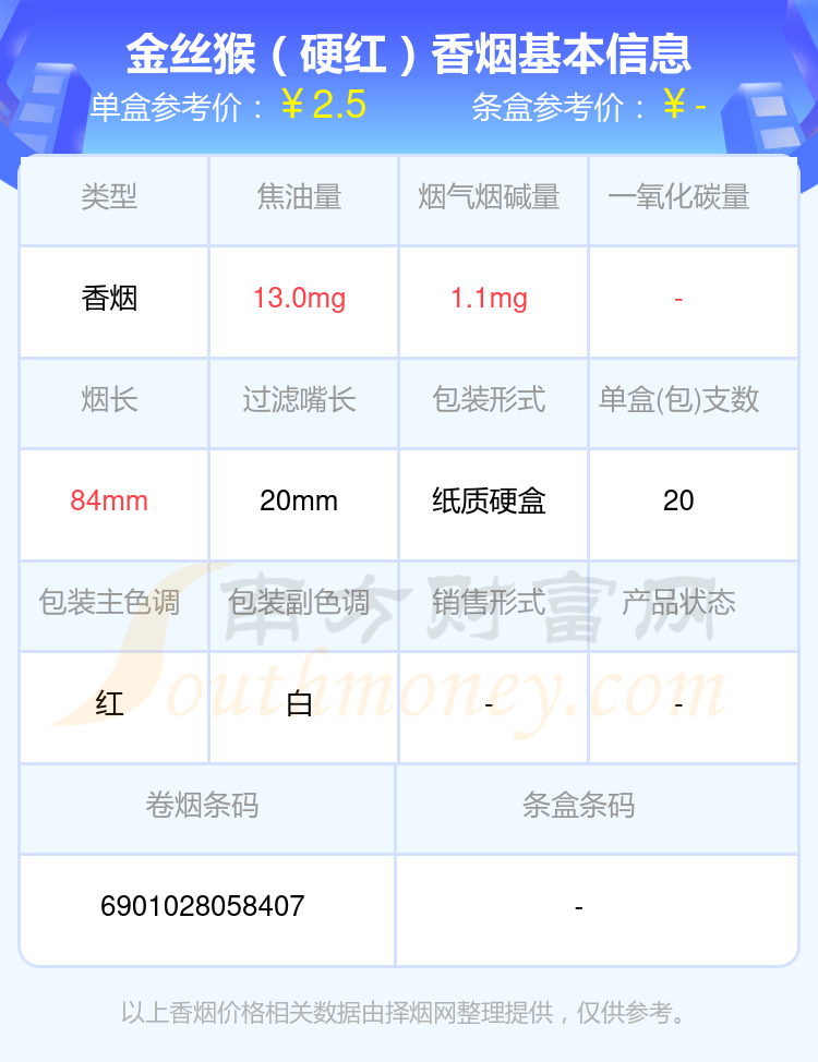 擇煙網(wǎng)為大家盤點了金絲猴香煙尼古丁10mg以下的,分別有金絲猴(軟藍(lán))、金絲猴(硬紅)等,詳細(xì)價格如下: