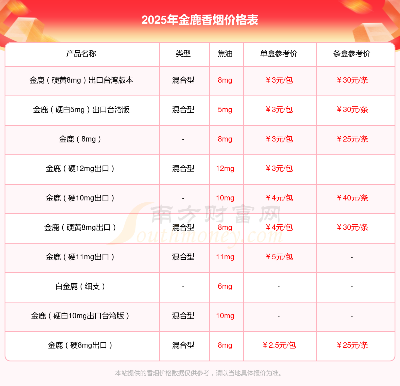 金鹿(硬5mg出口)單盒參考價:2.5元