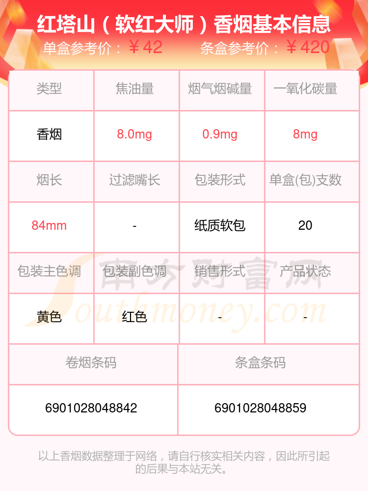 4、紅塔山(軟紅大師)