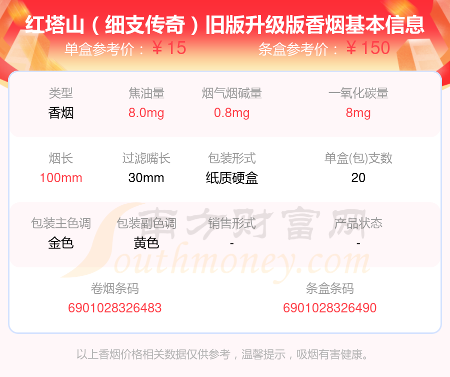 8、紅塔山(細支傳奇)舊版升級版