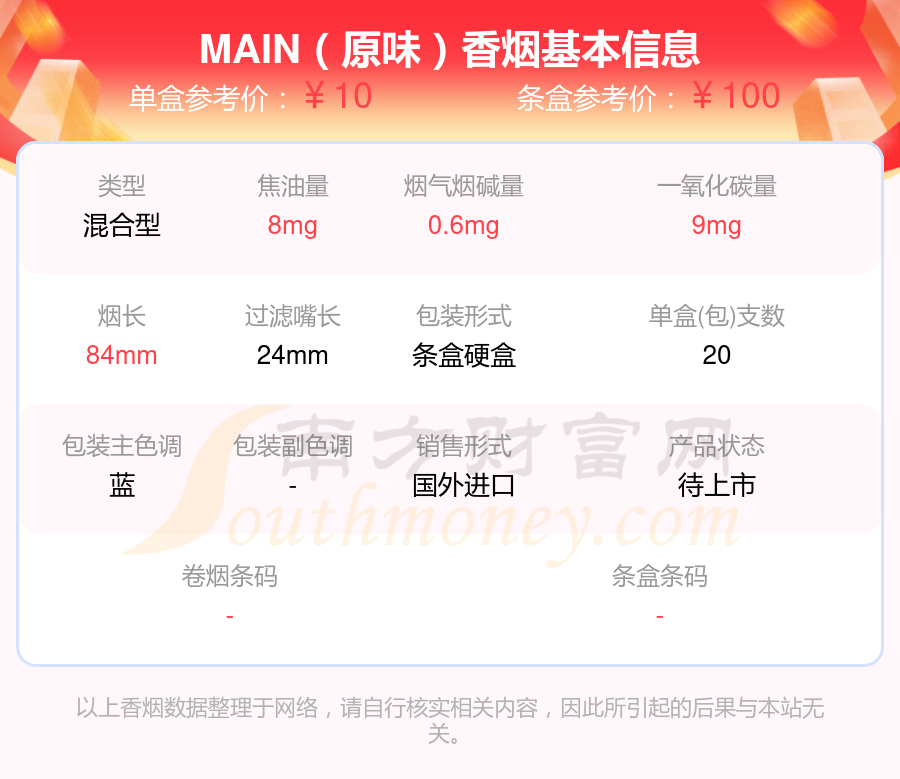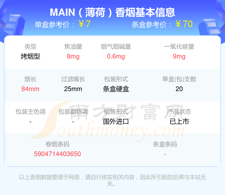 擇煙網(wǎng)為大家盤點了焦油量10mg以下的MAIN香煙,有MAIN(薄荷)、MAIN(原味)等,詳細價格如下: