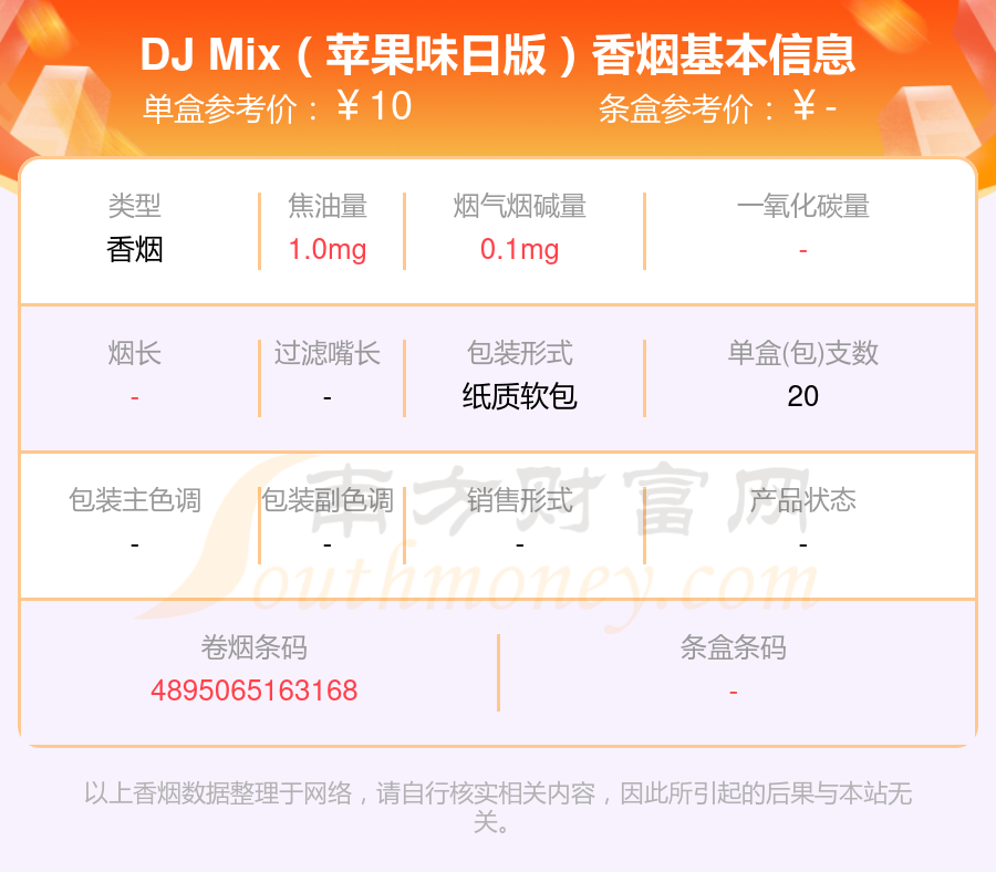 DJ Mix香煙焦油量低于8mg的煙有哪些?擇煙網(wǎng)為大家整理提供,分別有:djmix藍(lán)莓爆珠、DJ Mix(蘋果味日版)等,具體價(jià)格如下:
