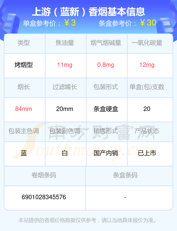 尼古丁低于1mg的上游香煙有哪些?擇煙網(wǎng)為大家整理盤點(diǎn),有上游(嘴)、上游(藍(lán)新)等,詳細(xì)價格如下: