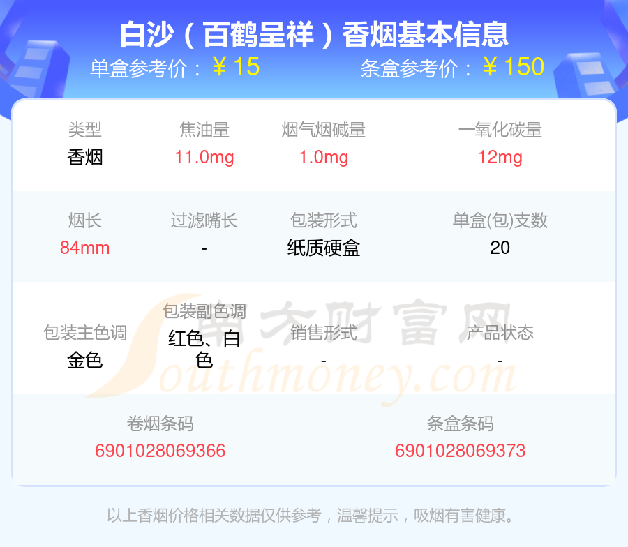 以上香煙價格相關(guān)數(shù)據(jù)僅供參考,溫馨提示,吸煙有害健康。
