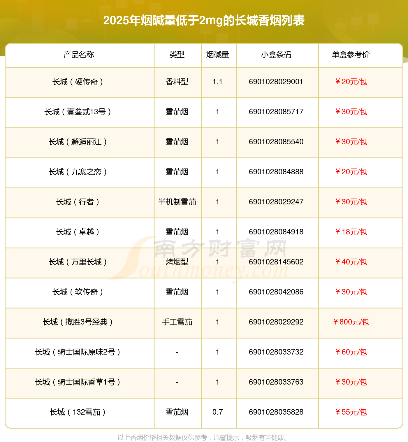 以上香煙價格相關數(shù)據(jù)由擇煙網(wǎng)整理提供,僅供參考。