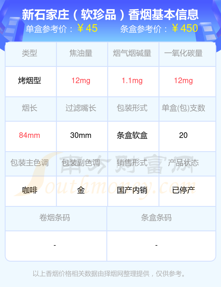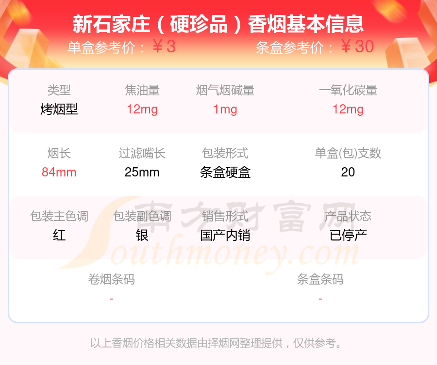 新石家莊(綠石2代)參考價(jià)10元/包、新石家莊(軟珍品)參考價(jià)45元/包、新石家莊(紅石2代)參考價(jià)5.5元/包、新石家莊(軟)參考價(jià)3元/包、新石家莊(金)參考價(jià)15元/包、新石家莊(硬珍品)參考價(jià)3元/包、新石家莊(軟紅)參考價(jià)3元/包等。