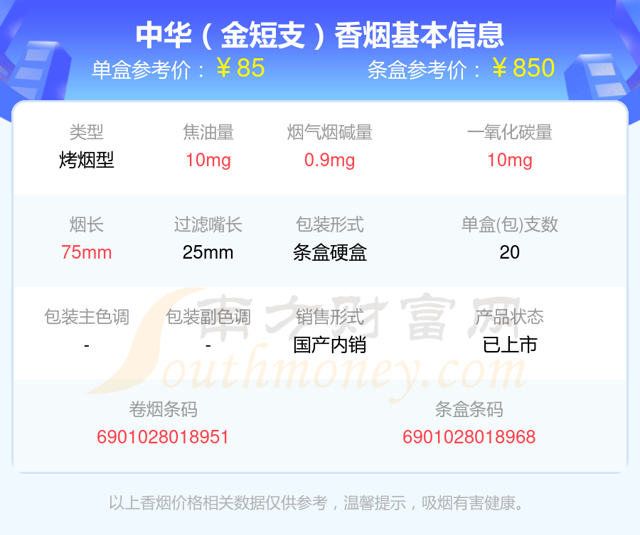 80元至90元的中華香煙有哪些?擇煙網(wǎng)為大家整理盤(pán)點(diǎn),分別有:中華(金中支)、中華(金短支)、中華(金中支非賣(mài))等,具體價(jià)格如下:
