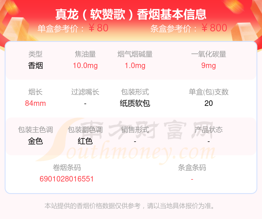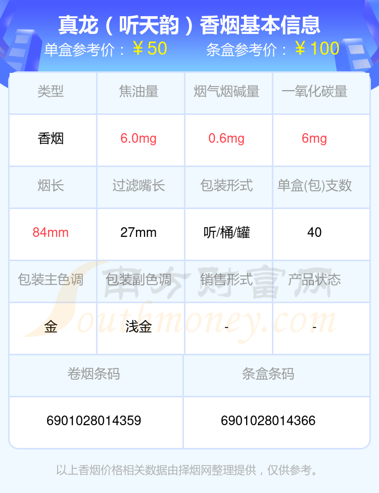 真龍(金韻)參考價80.0元/包、真龍(軟贊歌)參考價80.0元/包、真龍(軟海韻)參考價70元/包、真龍(巴馬天和)參考價65.0元/包、真龍(禪韻)參考價65元/包、真龍(海韻細支)參考價60.0元/包、真龍(神韻)參考價50.0元/包、真龍(聽天韻)參考價50.0元/包、真龍(海韻)參考價50.0元/包等。