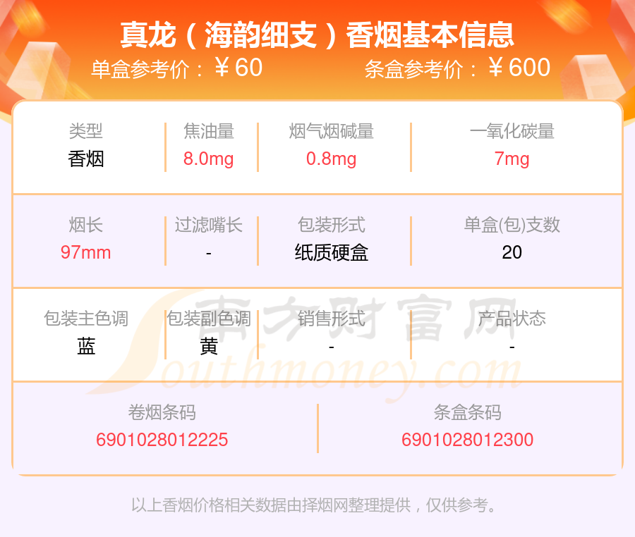 本站提供的香煙價格數(shù)據(jù)僅供參考,請以當?shù)鼐唧w報價為準。