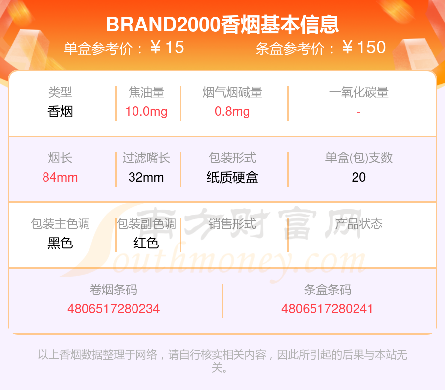 BRAND2000參考價(jià)15.0元/包、BRAND2000參考價(jià)12.0元/包等。