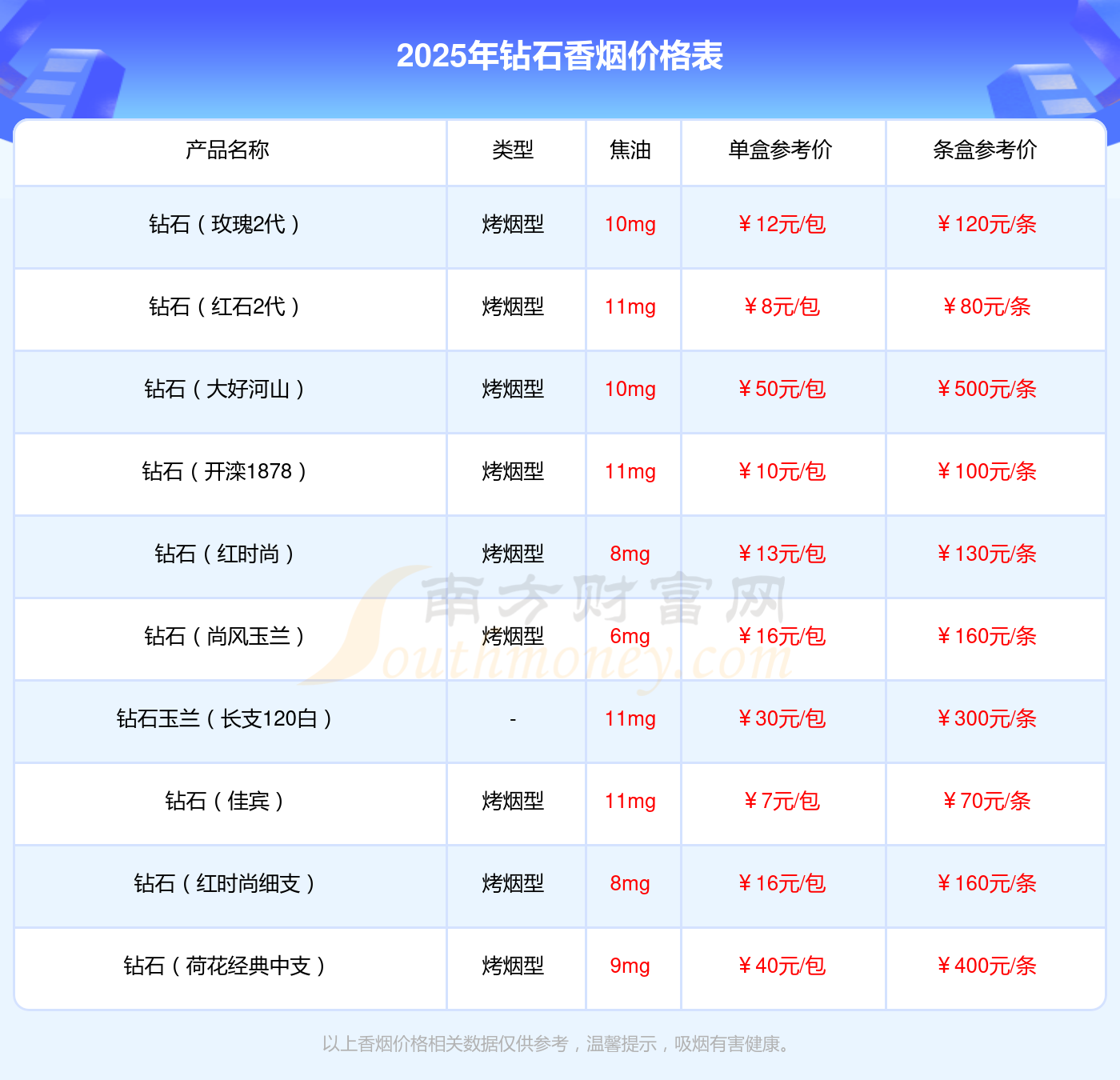 鉆石卷煙創(chuàng)牌于2001年,是河北中煙張家口卷煙廠的品牌,擁有紅鉆石、銀鉆石、紫鉆石、金鉆石、藍鉆石等多個系列,其中鉆石景泰、鉆石錦繡、鉆石國嘴120、鉆石如意、鉆石珍品等,受到煙民的好評。鉆石憑借“物超所值”的理念,迅速成長壯大起來,成為河北煙草一道靚麗的風(fēng)景線。