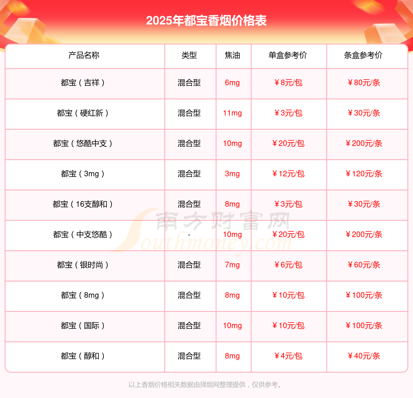 以上香煙價格相關數據由擇煙網整理提供,僅供參考。