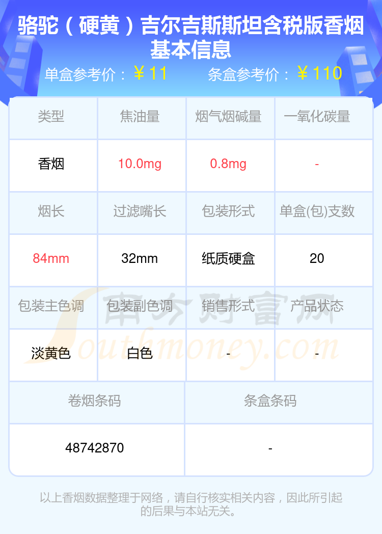 3、駱駝(硬黃)吉爾吉斯斯坦含稅版