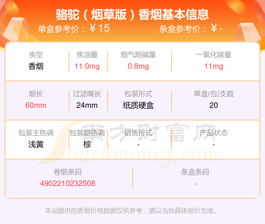 以上香煙價格相關(guān)數(shù)據(jù)由擇煙網(wǎng)整理提供,僅供參考。