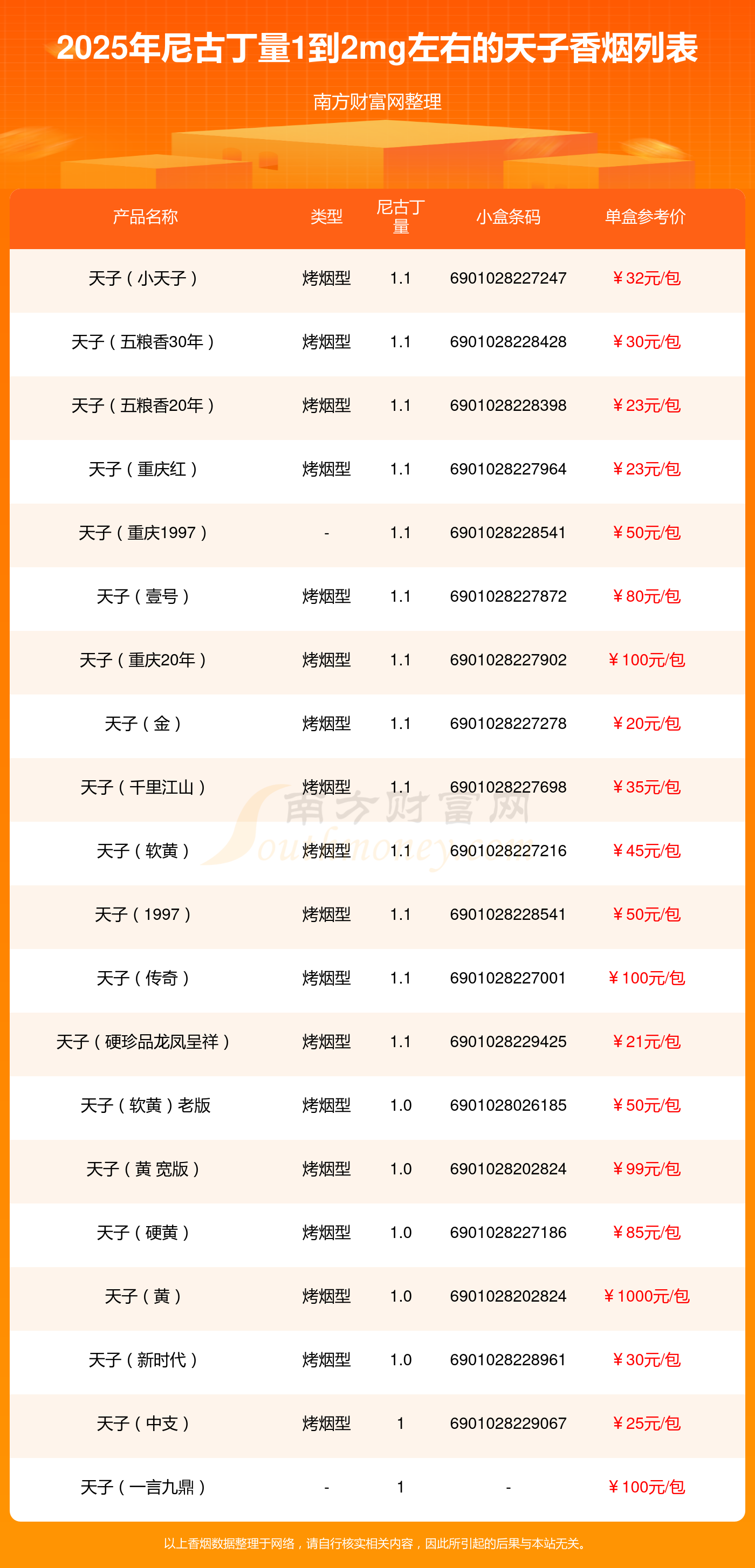 擇煙網(wǎng)為大家盤點(diǎn)了尼古丁量1到2mg左右的天子香煙,有以下這些: