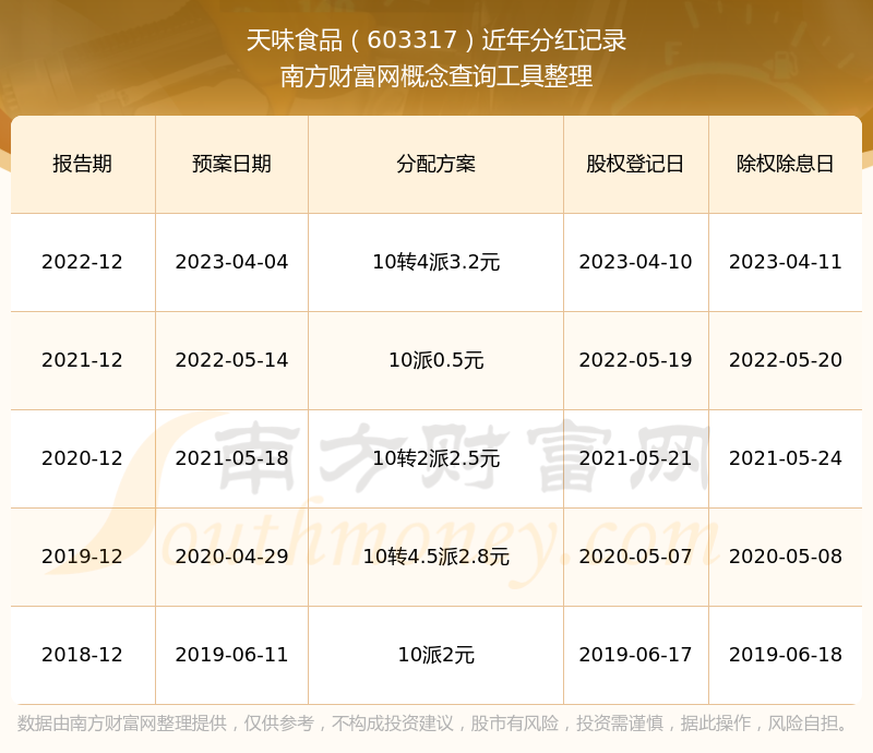 天味食品最新一次公布的分紅方案:10轉4派3.2元。