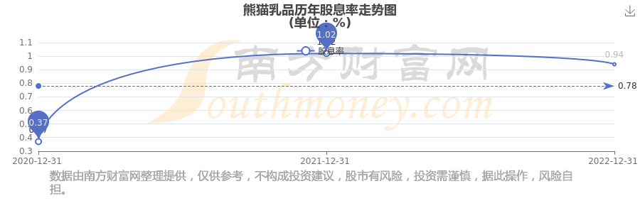 近年熊貓乳品年度股息率走勢(shì)如下圖: