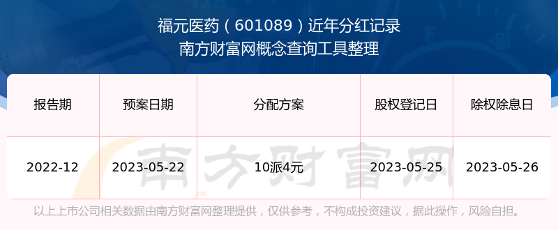 福元醫(yī)藥最新一次公布的分紅方案:10派4元。