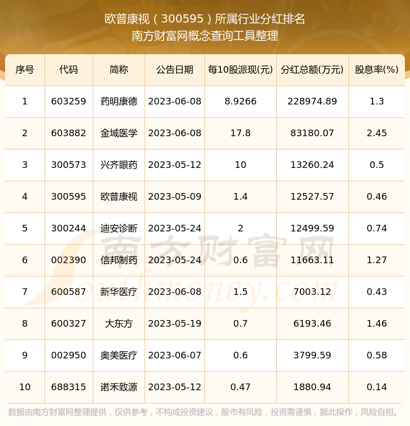 按照南方財(cái)富網(wǎng)趨勢選股系統(tǒng)統(tǒng)計(jì),歐普康視所屬行業(yè)為角膜塑形鏡行業(yè),角膜塑形鏡行業(yè)分紅排名情況如下表: