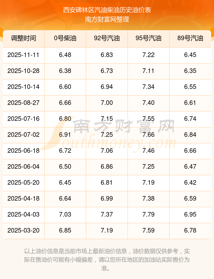 西安碑林區(qū)歷史油價(jià)表