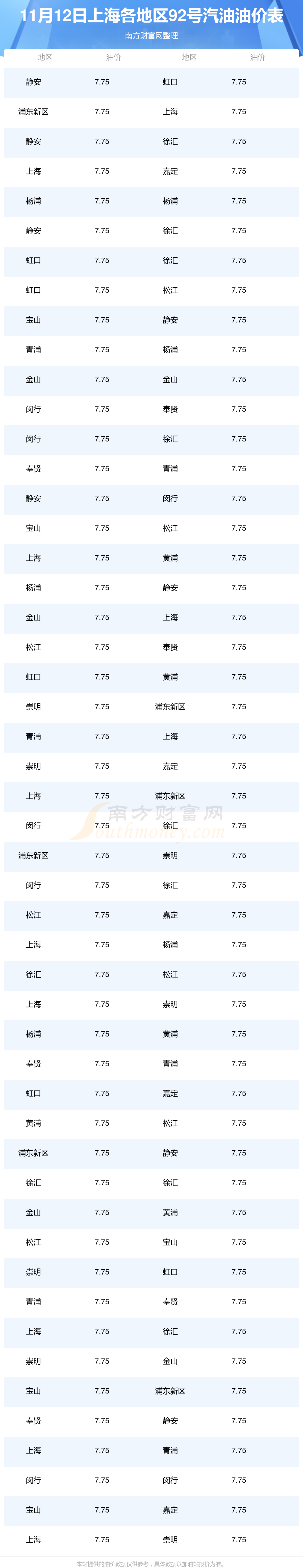 2025年11月12日上海92號(hào)汽油最新價(jià)格一覽表
