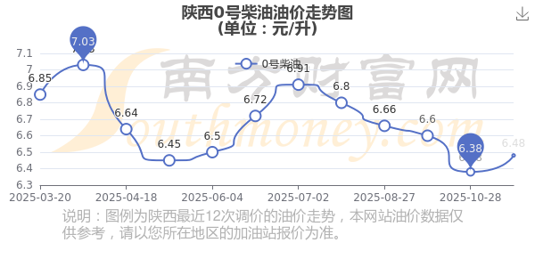 11月12日,陜西0號柴油的價格是6.48元每升,本次的調(diào)整時間為11月11日,對比上次的調(diào)整上調(diào)了0.1元,上調(diào)1.567%,11月24日24時為下一輪油價調(diào)整時間,還有12.52天。
