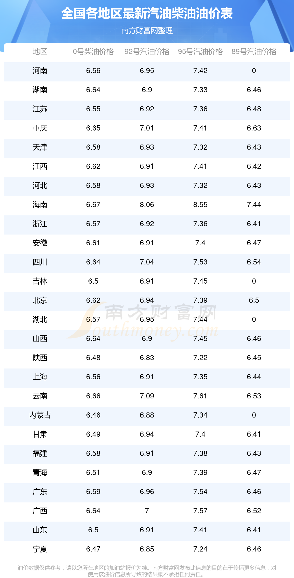 油價(jià)數(shù)據(jù)僅供參考,請(qǐng)以您所在地區(qū)的各加油站報(bào)價(jià)為準(zhǔn)。
