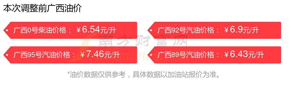 11月12日廣西92號汽油的油價為11月11日調(diào)整后的價格,具體是7元每升,相對上次油價調(diào)整升了0.1元。