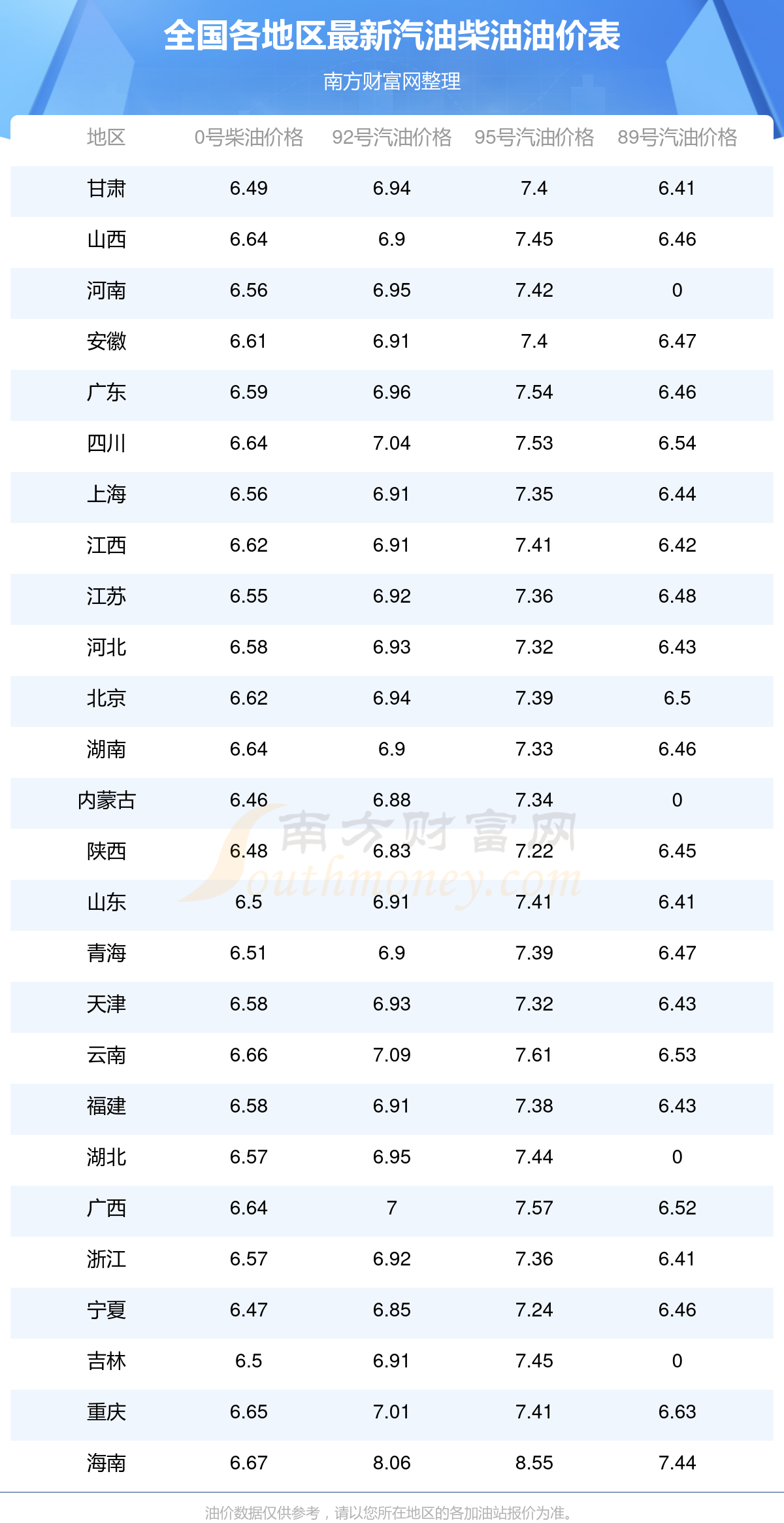 2025年11月12日全國油價(jià)調(diào)整及最新汽油價(jià)格表