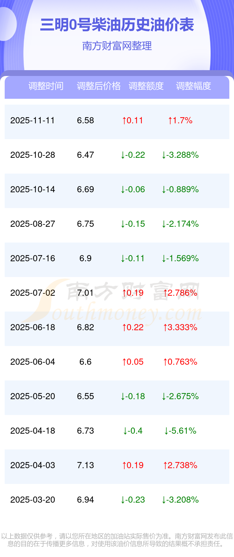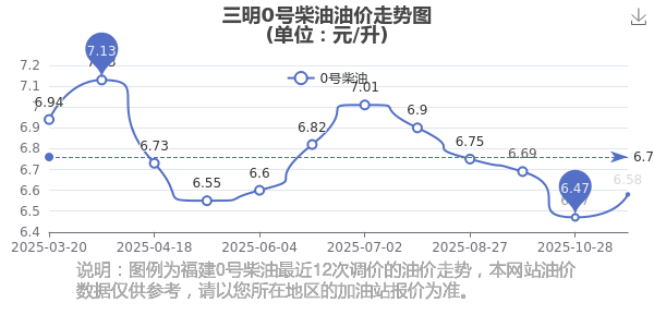 三明0號柴油歷史油價表
