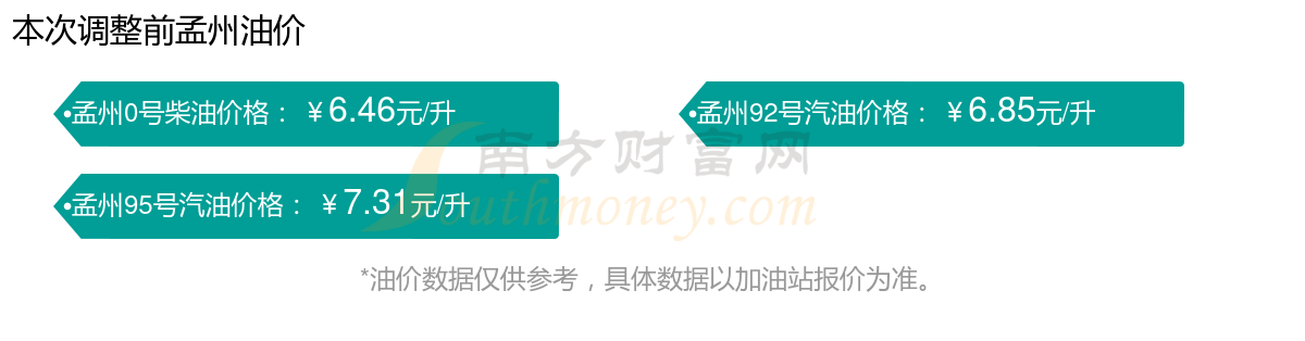 最近一次油價(jià)調(diào)整最新價(jià)格表