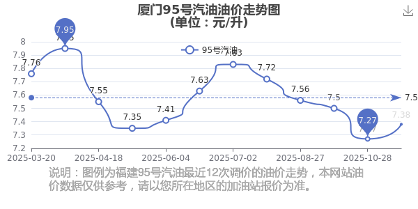 廈門2025年汽油價格調(diào)整走勢圖