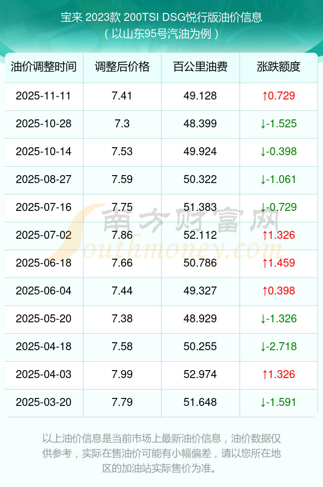 根據(jù)11月11日95號汽油最新調(diào)整價格7.41元/升來計算(以山東為例),該車型每百公里的平均油費是49.128元,上一輪10月28日調(diào)整價格7.3元每升來計算,每百公里的平均油費是48.399元,對比上一輪多花0.729元,下一輪的油價調(diào)整時間是11月24日24時。