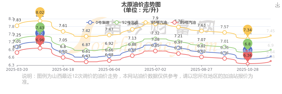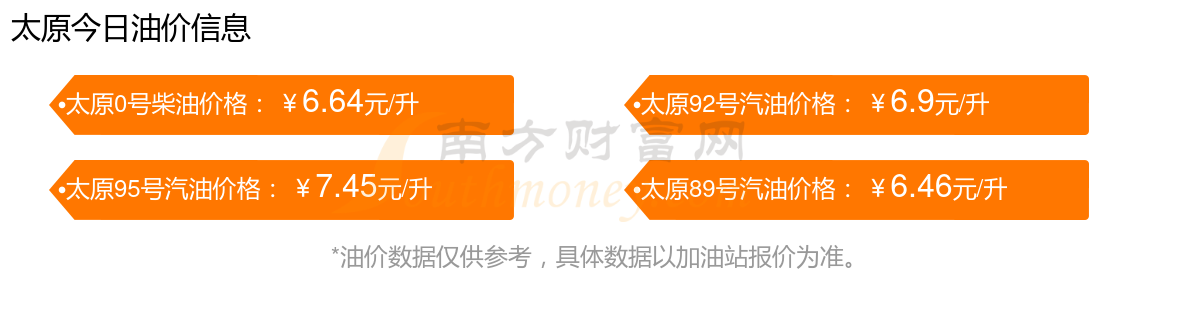 以上油價(jià)信息是當(dāng)前市場(chǎng)上最新油價(jià)信息,油價(jià)數(shù)據(jù)僅供參考,實(shí)際在售油價(jià)可能有小幅偏差,請(qǐng)以您所在地區(qū)的加油站實(shí)際售價(jià)為準(zhǔn)。