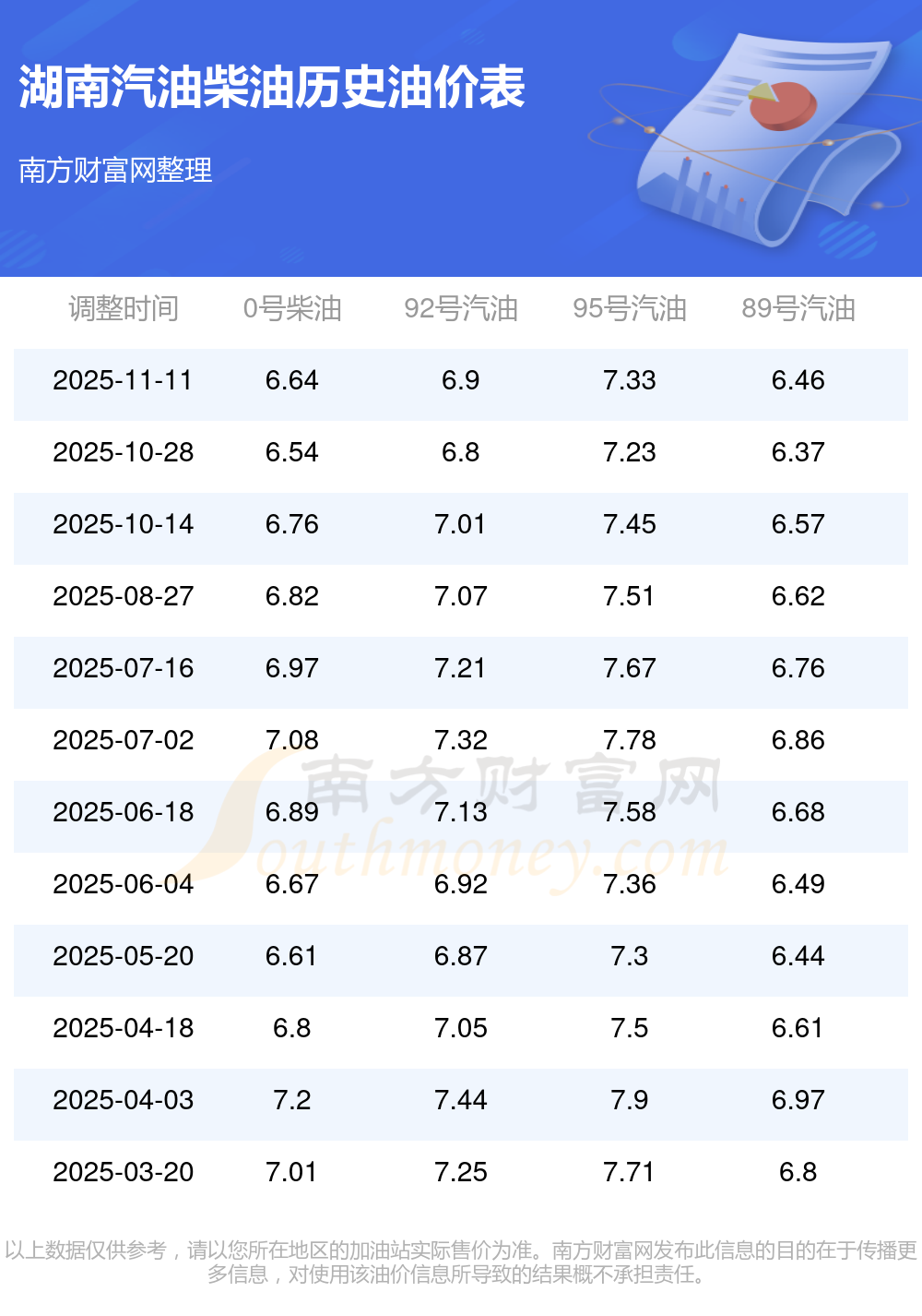 湖南2025年最新汽油柴油歷史油價(jià)表