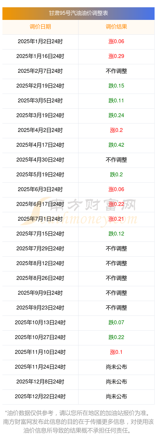 2025年甘肅最新汽油價(jià)格調(diào)整一覽表