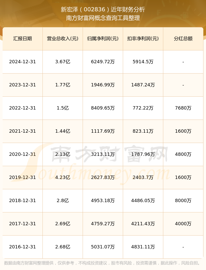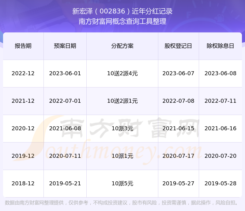 新宏澤最新一次公布的分紅方案:10送2派4元。
