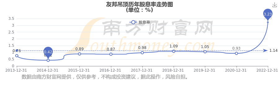 友邦吊頂歷年股息率走勢(shì)如下圖: