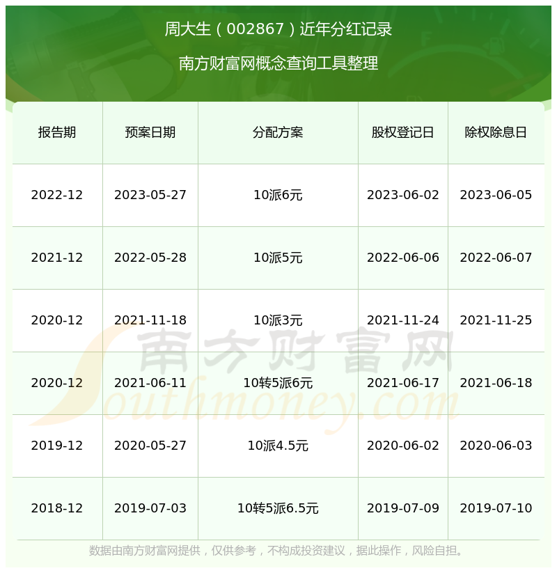 一、周大生(002867)股票分紅記錄
