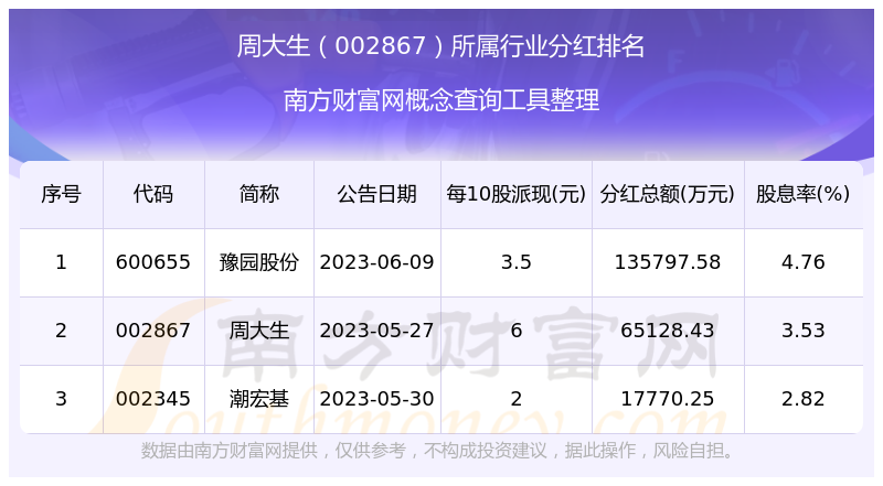 二、周大生002867行業(yè)分紅排名